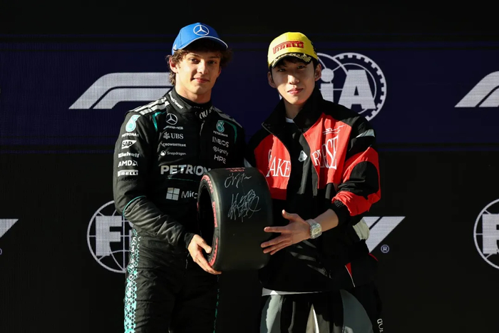 林孝埈为F1历史上最年轻的杆位得主安东内利颁奖